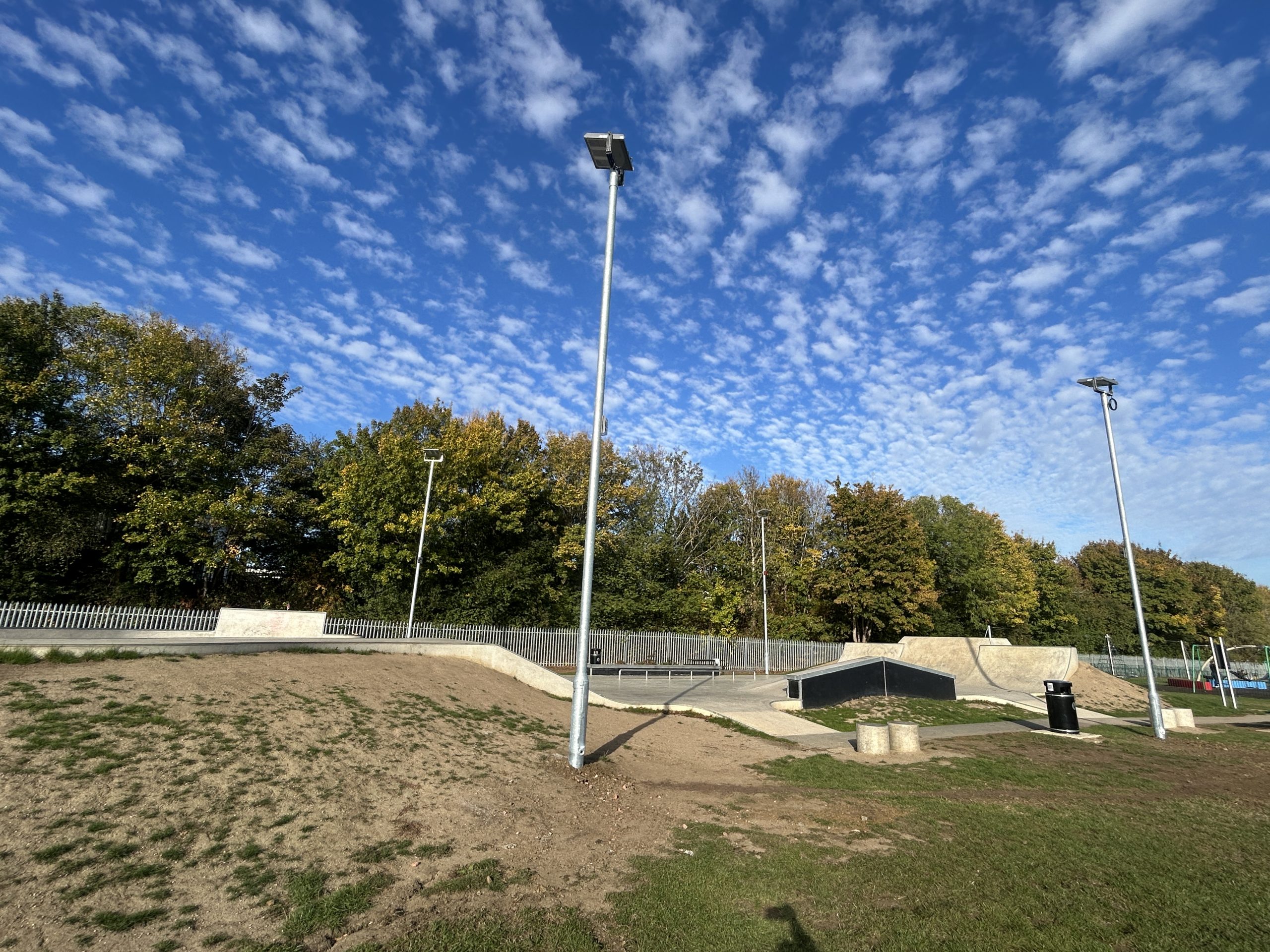 The new lighting will enhance the safety and usability of the skatepark, allowing skaters and visitors to enjoy the facility even during the darker evening hours. In addition, CCTV cameras will soon be installed, further boosting security for everyone who uses the park.